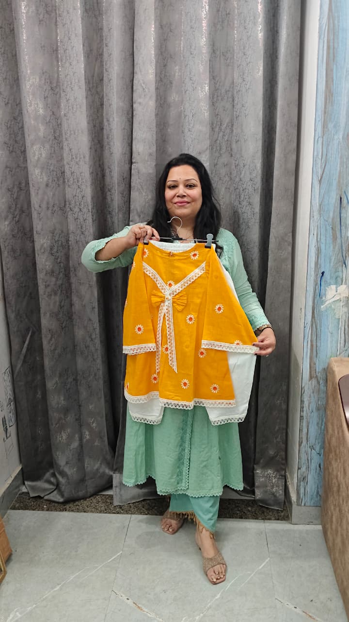 Pure cotton lace work with sunflower embroidered cord sets with tulip.