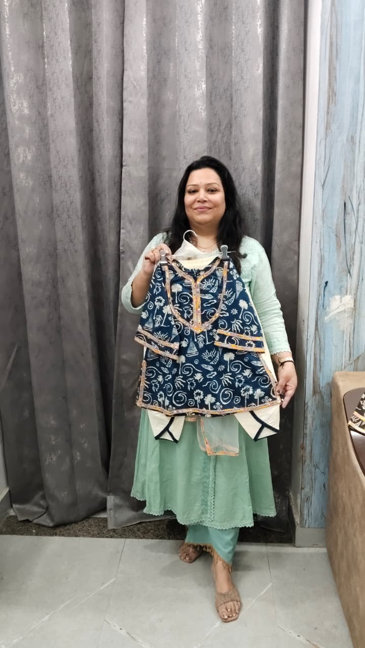 Beautifully designed premium indigo prints cotton suit Set with lace work on neck sleevs n bottom with net duptta along with lace.