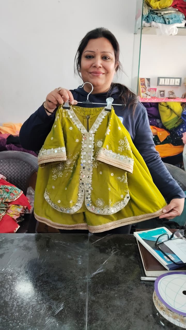 - Sharara: Matching Vichitra Silk with a smooth inner lining for a perfect flare and fit.