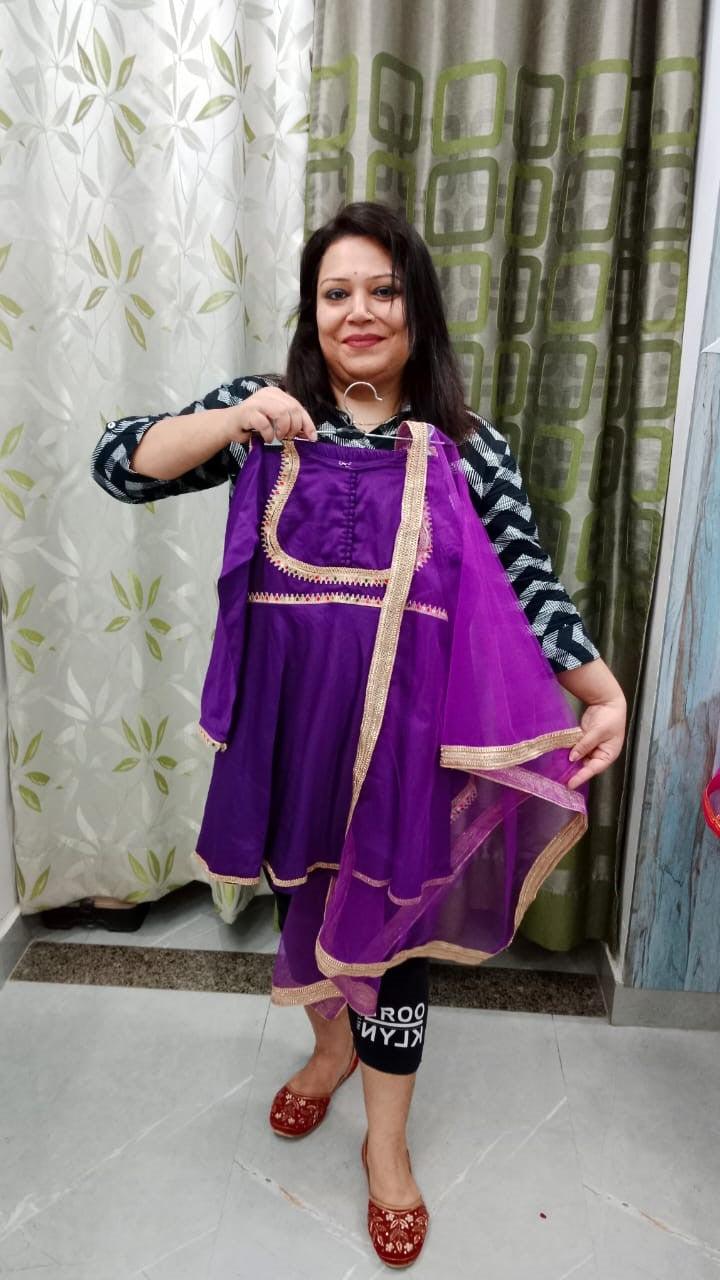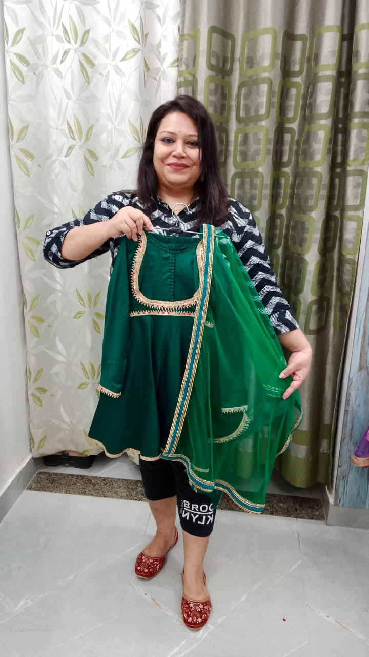 premium glace cotton matka style lace work suit with tulip cut pant along with heavy boder dupatta