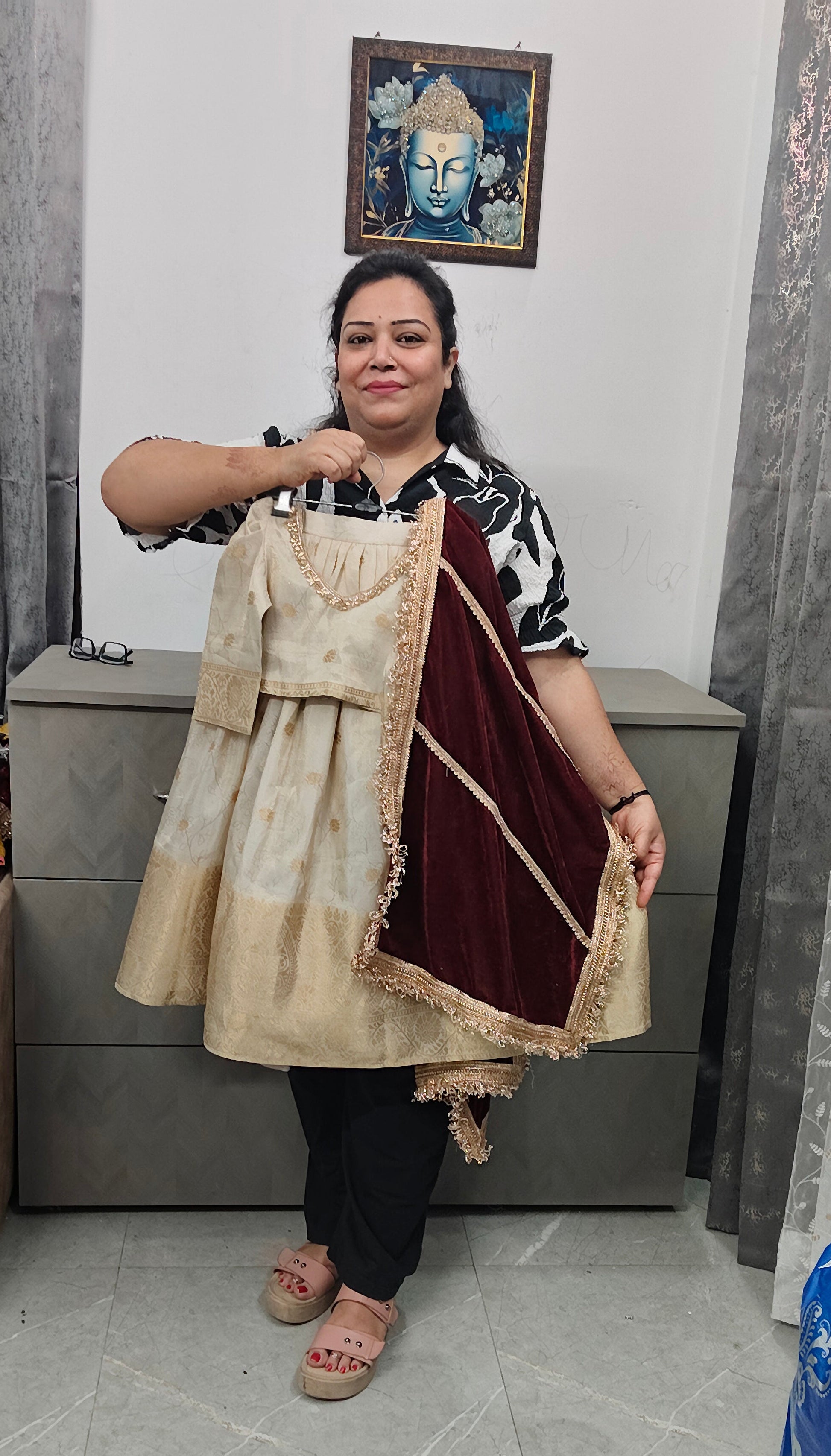 Premium Banarasi zari weave lehenga with Banarasi blouse having soft cotton linings inside along with mirror n Kundan work and velvet stole