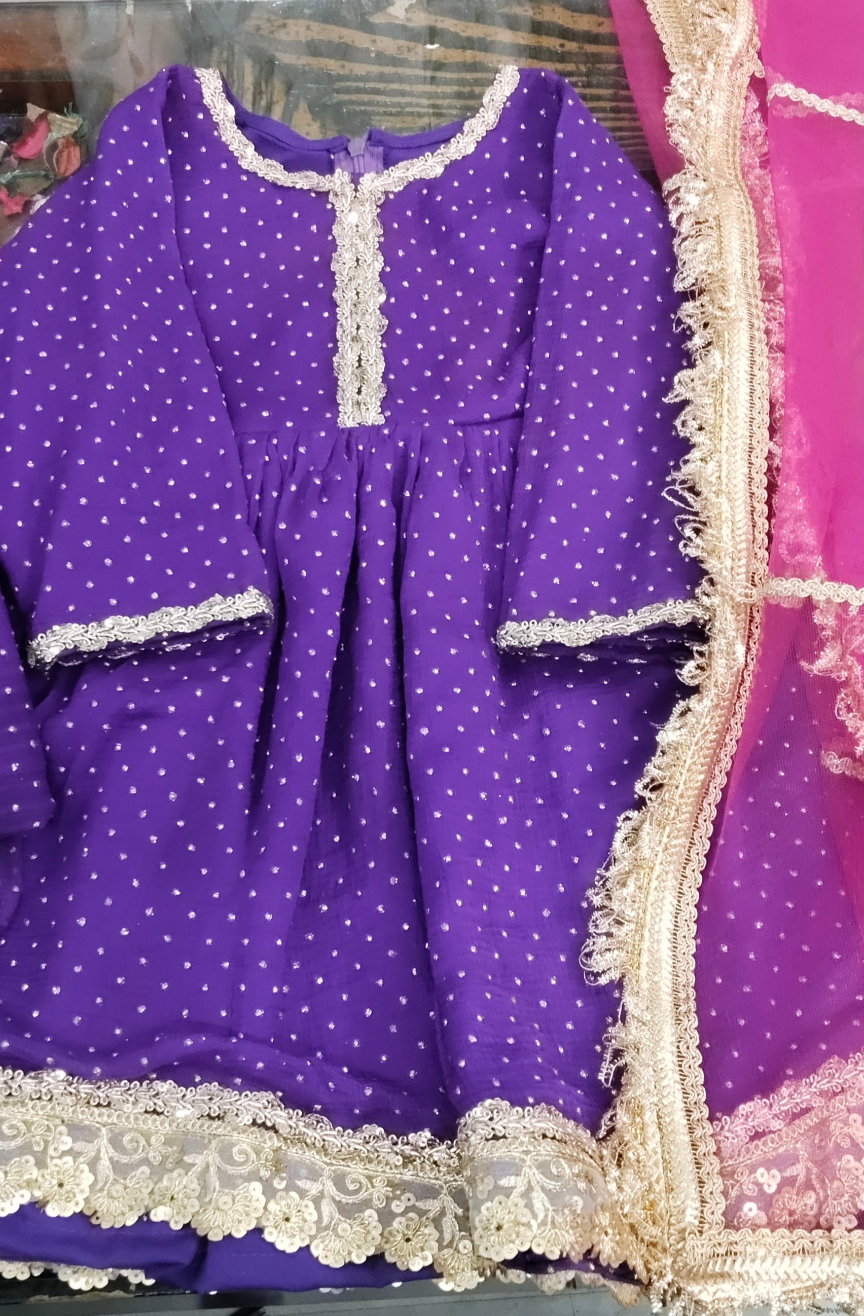 Soft sheffon mukaish work sharara set with full soft crape linings along with sequis work heavy dupatta