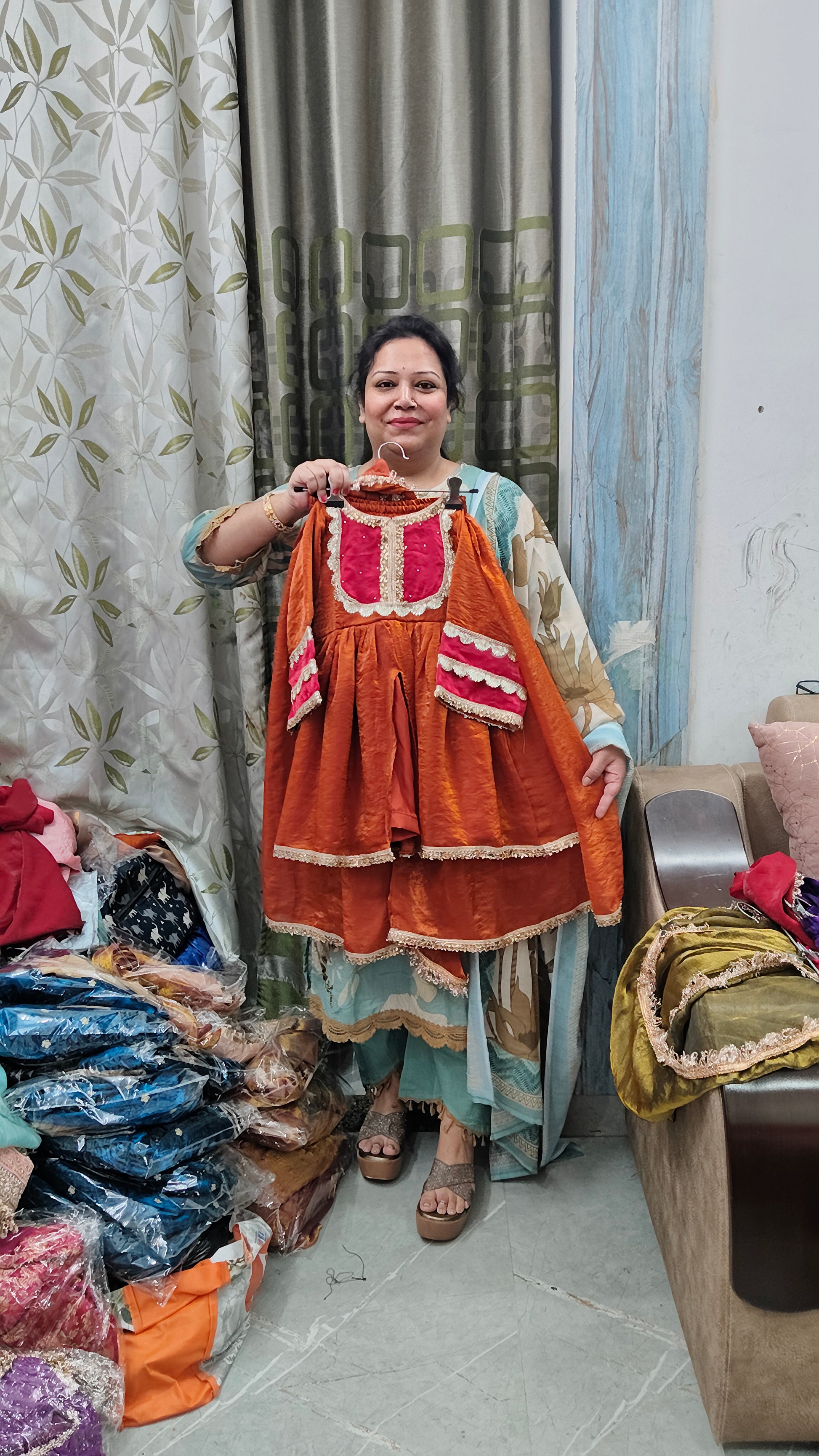 Premium satin silk sharraa set emblished with kundan n mirror work along with gota work and huge flayer sharara with soft linings