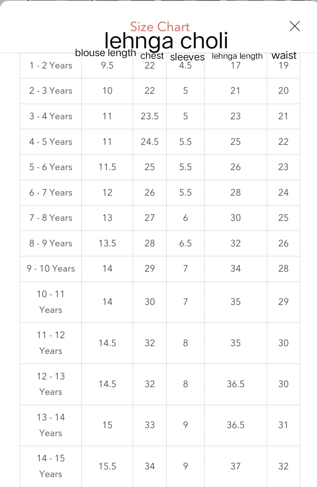 Check size chart before ordering