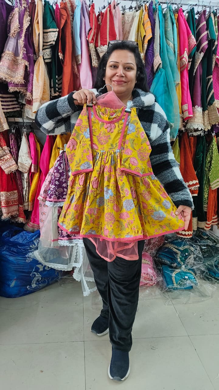 Beautifully designed pure cotton suits, embellished with intricate Chikan lace. Styled to perfection with Gharara, Tulip, or Palazzo pants and a matching dupatta.