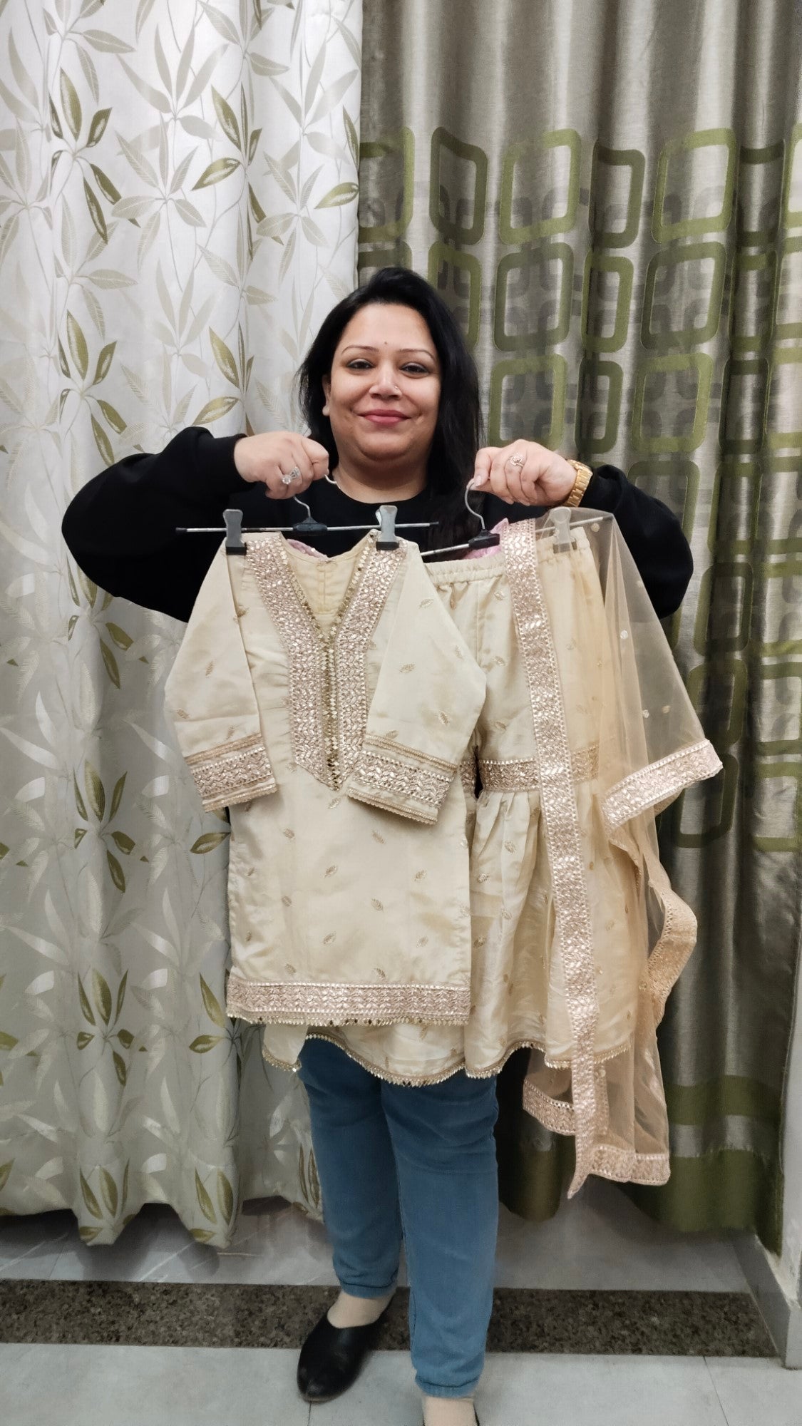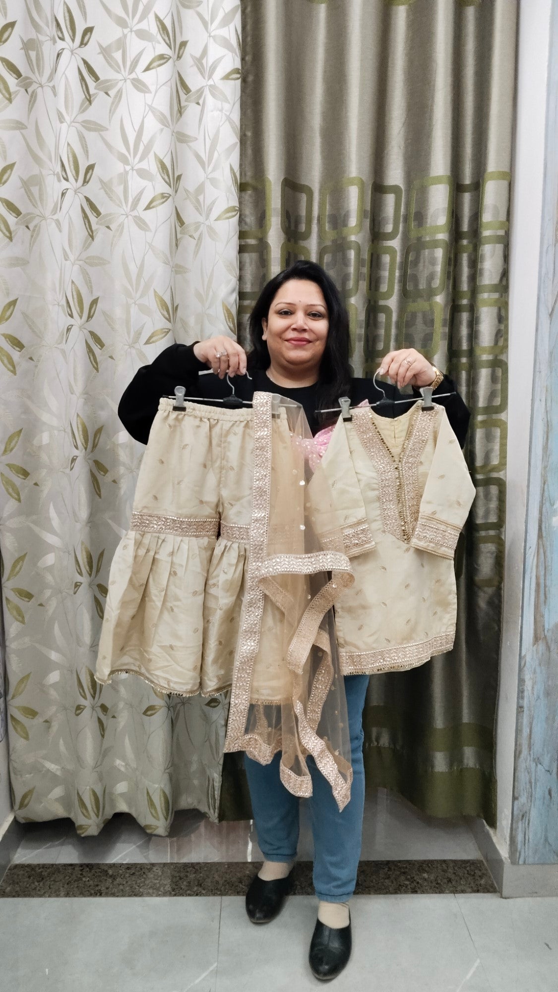 pure cosmos silk embroidered garara set with heavy gota and mirror work along with heavy ssequence work dupatta