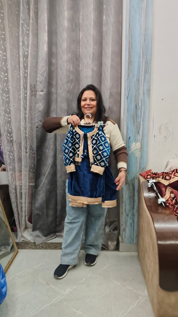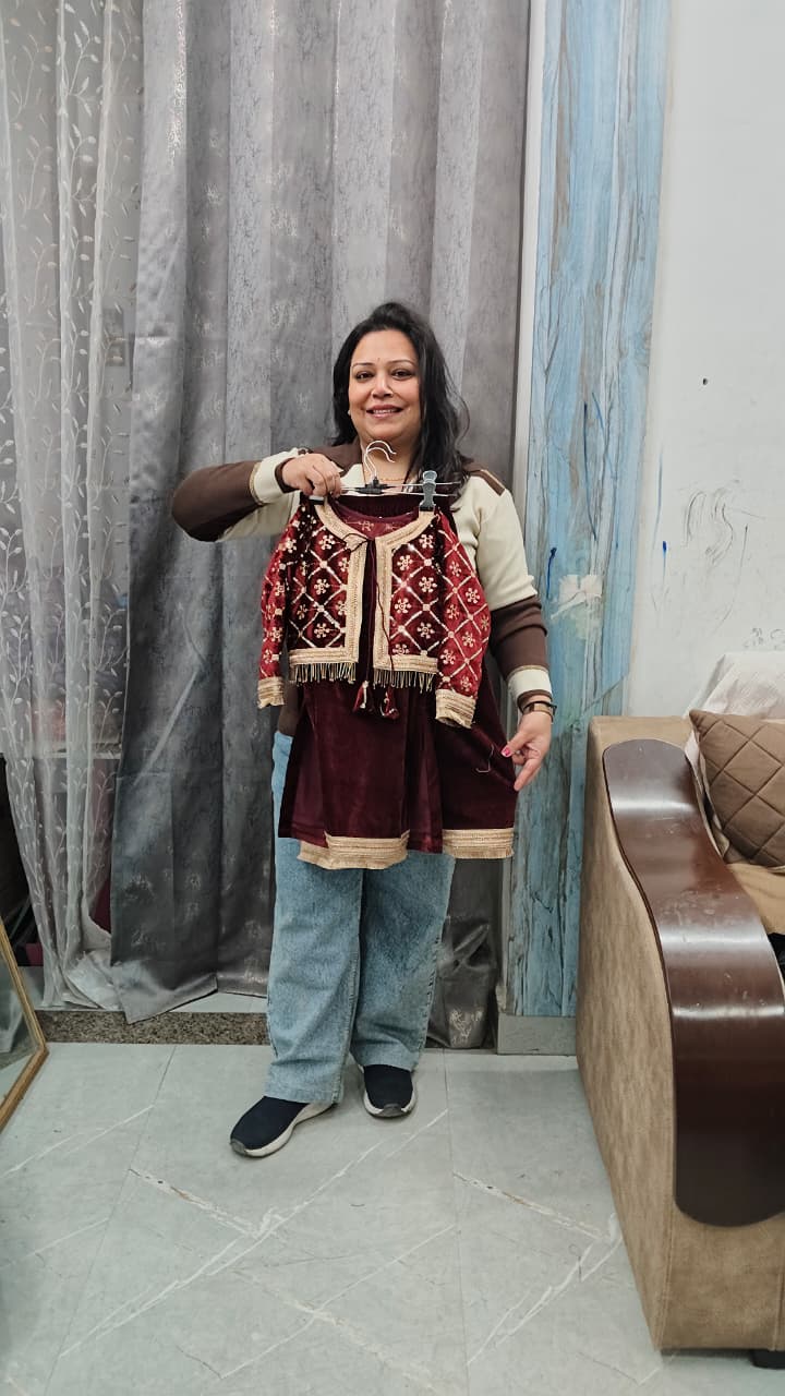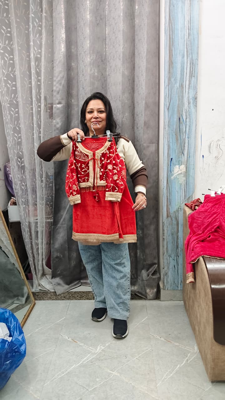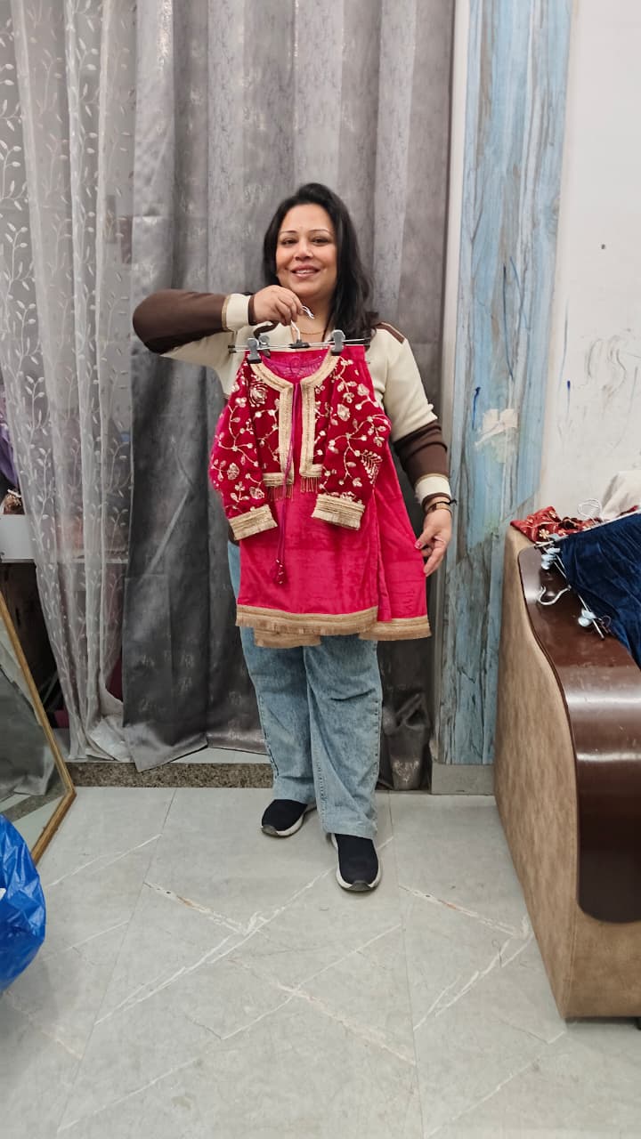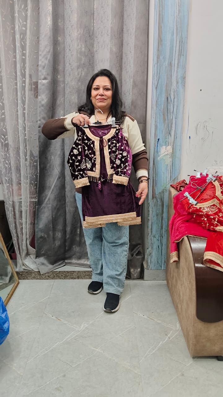 Premium velvet three piece to set with detachable hand work embroidered jacket with lining.
